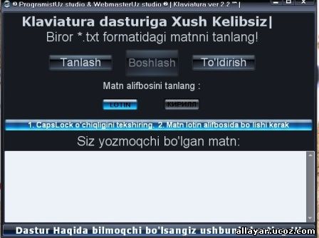 Saytta barlig'i: 1 Miymanlar: 1 Paydalaniwshilar: 0 |
